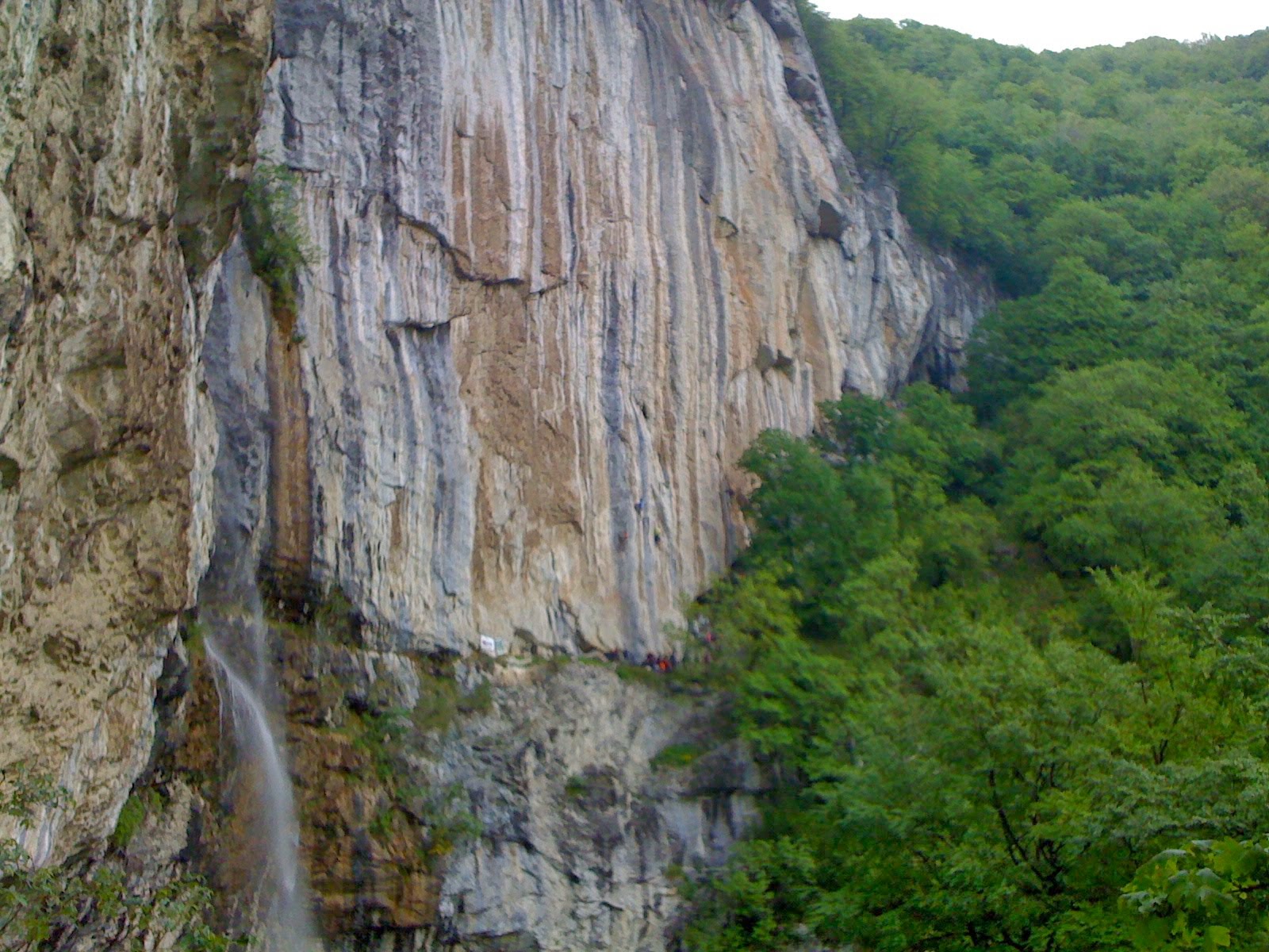 Si iaca prima zi din concurs, traseele cele mai usoare erau ude, dar m-am riscat sa dau din prima un 6+, caci era soare, oarecum. Apropo, faleza de la concurs e Cascada Vanturatoarea (un loc minunat). Asa, si cum spuneam, m-am dat pe Lacerta(6+) de la sectorul 1 (o incalzire de 30 m). Eram filat de un prieten de la sala, Florin. Ajuns la ultima bucla, incepe o ploicica marunta, n-am bagat de seama, dar deodata se starneste o grindina marunta de vreo 10 minute si iar nu bagasem de seama, caci eram atent la ultima miscare ce presupunea incarcarea pe o priza mica de picior si nu-mi dadeam seama de ce nu iese!? Dooh! Boon, am strigat ca mai incerc odata miscarea si cand ma uit in jos Florin era deja ghemuit sub geaca facand niste semne ciudate cu fluieraturi si plus ca tineam si arbitrul in grindina si m-am decis sa eliberez traseul pentru maine :))